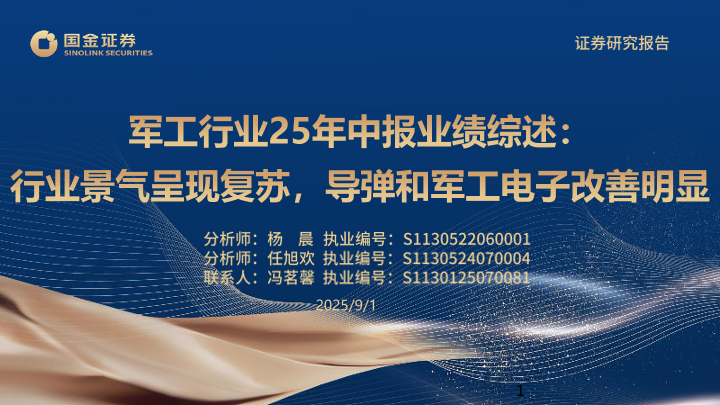 【国金证券】【202509】军工行业25年中报业绩综述:行业景气呈现复苏,导弹和军工电子改善明显-43页