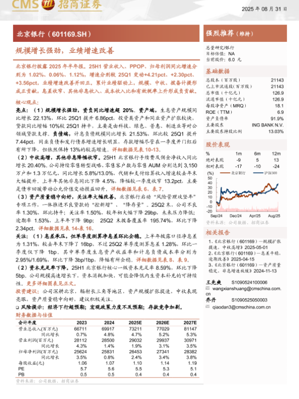 【海通证券】【202508】北京银行(601169)——规模扩张提速,中收高增-20页