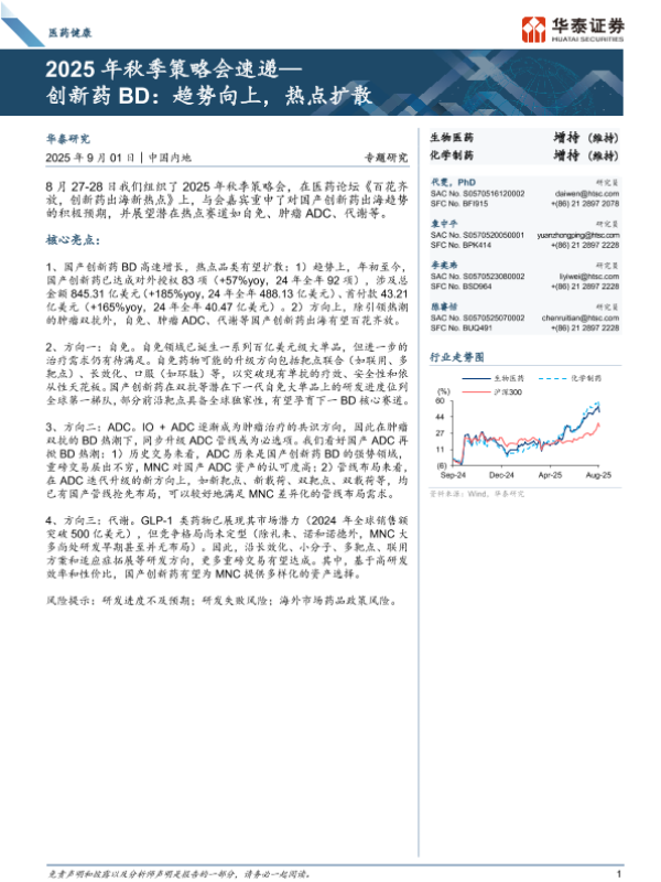 【华泰证券】【202509】医药健康2025年秋季策略会速递—创新药BD:趋势向上,热点扩散-11页