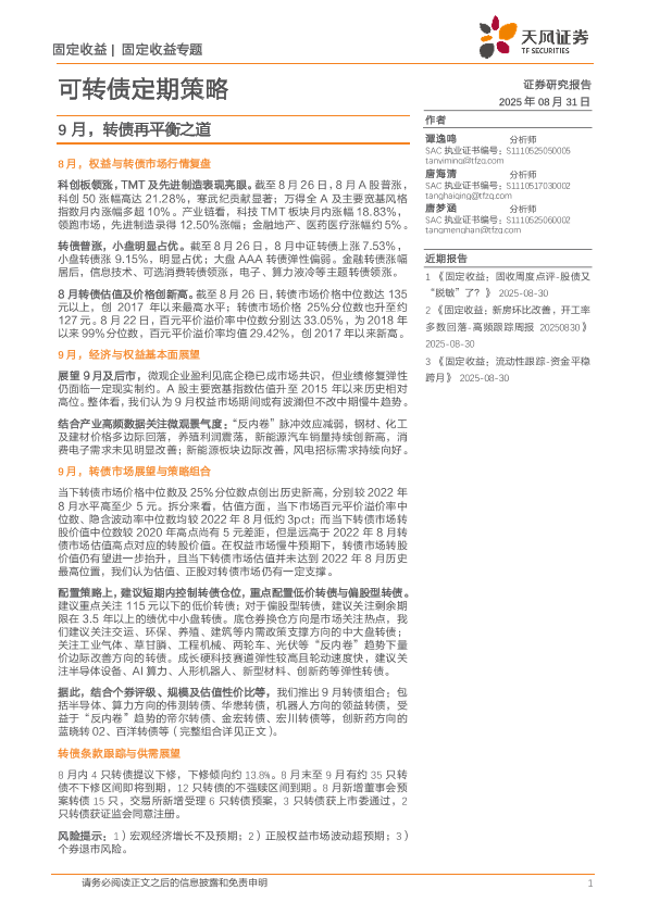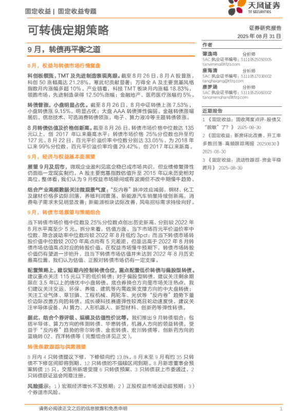 【天风证券】【202508】可转债定期策略:9月,转债再平衡之道-25页