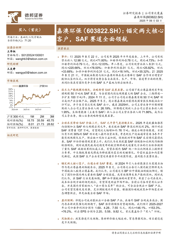 【德邦证券】【202509】嘉澳环保(603822)锚定两大核心客户,SAF赛道全面领航-15页