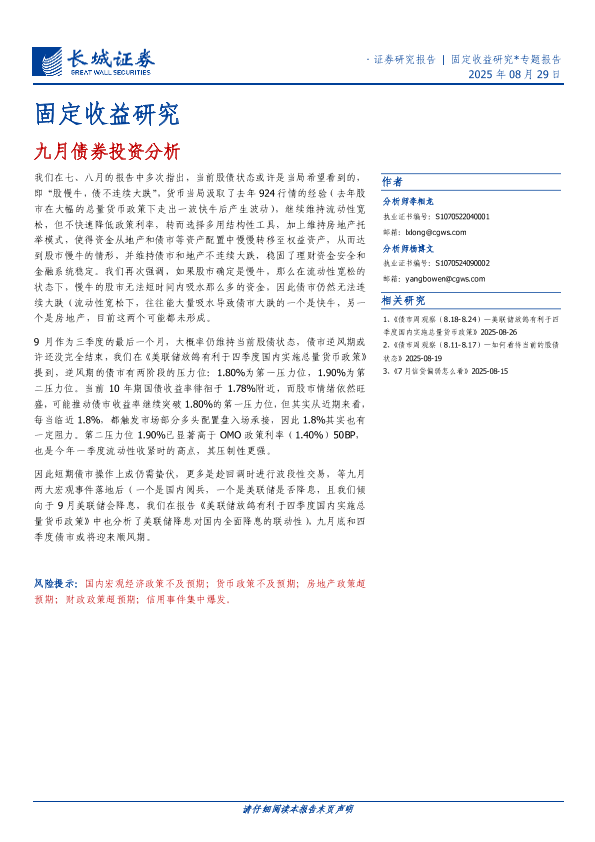 【长城证券】【202508】九月债券投资分析-24页