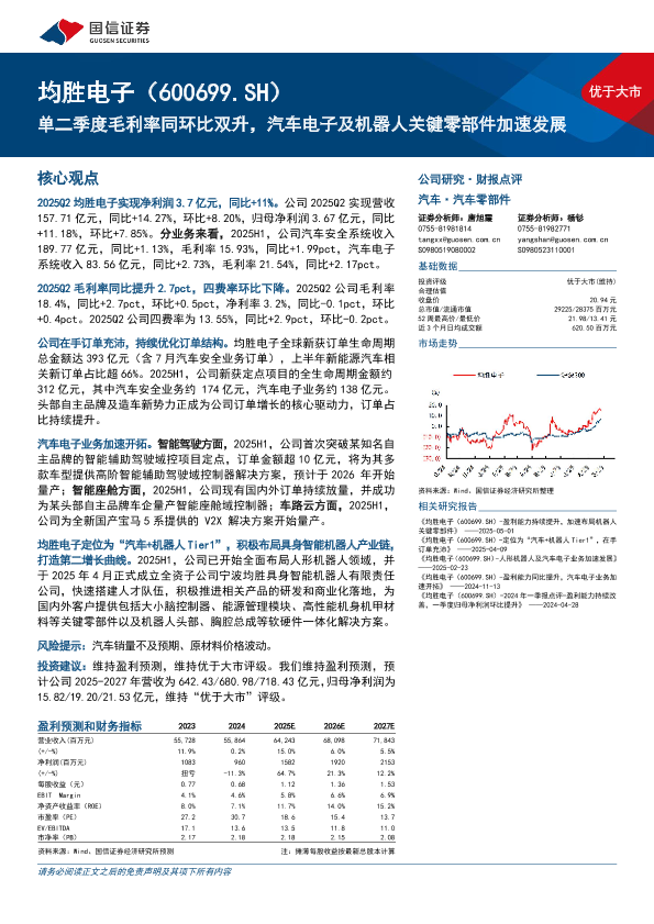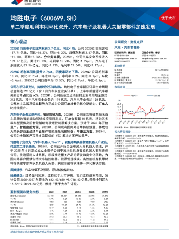 【国信证券】【202509】均胜电子(600699)单二季度毛利率同环比双升,汽车电子及机器人关键零部件加速发展-17页