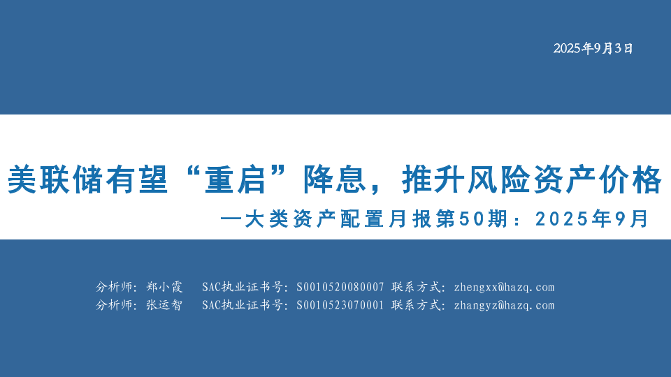 【华安证券】【202509】大类资产配置月报第50期:2025年9月,美联储有望“重启”降息,推升风险资产价格-34页