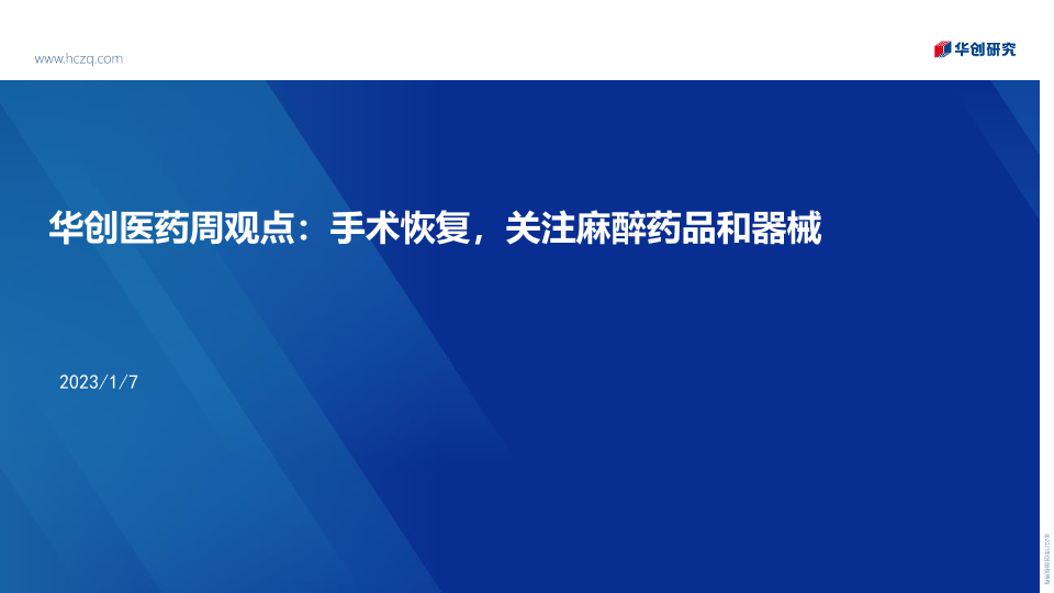 【华创研究】【20230107】华创医药周观点:手术恢复,关注麻醉药品和器械-34页