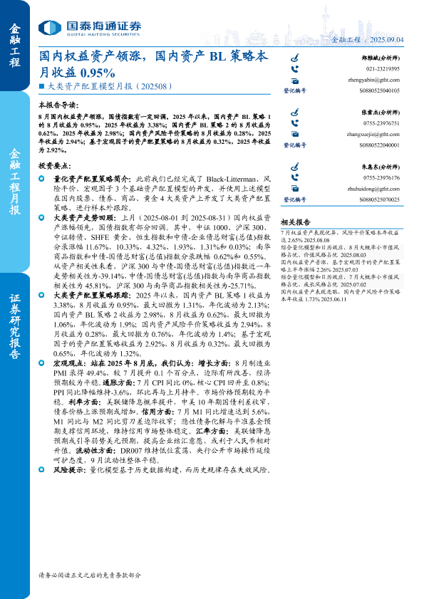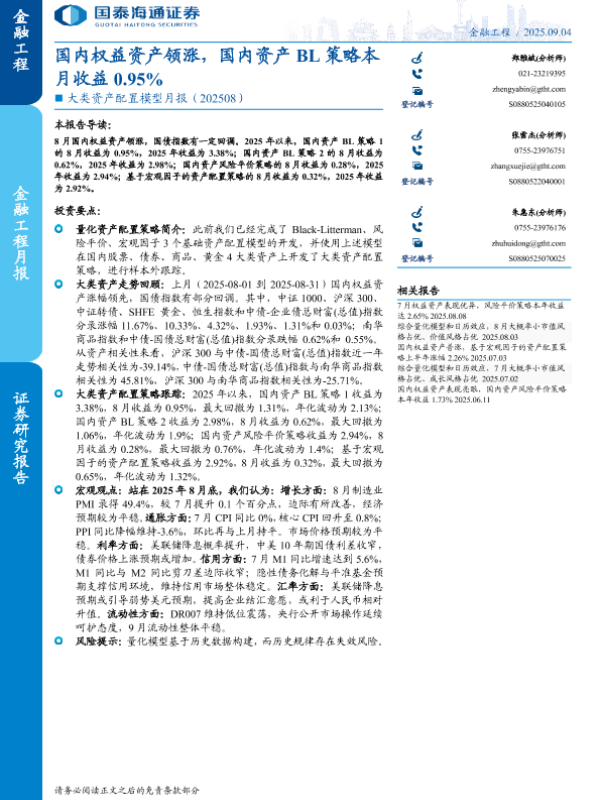 【国泰海通证券】【202509】大类资产配置模型月报:国内权益资产领涨,国内资产BL策略本月收益0.95%-17页