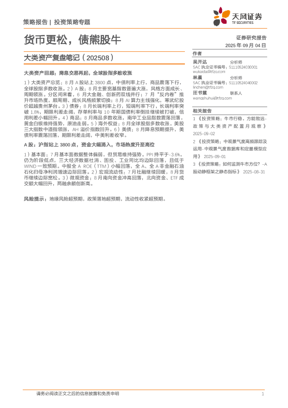 【天风证券】【202509】货币更松,债熊股牛-17页