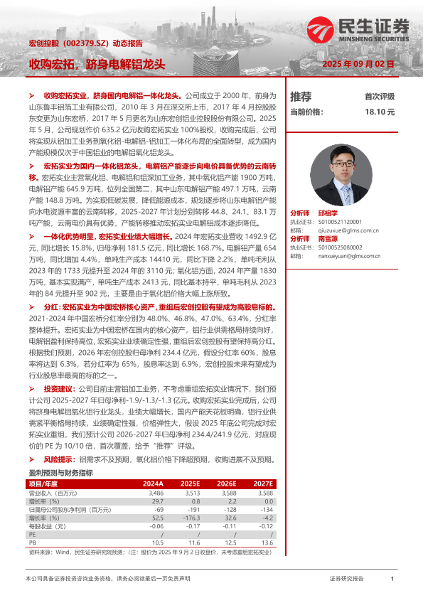【民生证券】【202509】宏创控股(002379.SZ)动态报告:收购宏拓,跻身电解铝龙头-25页