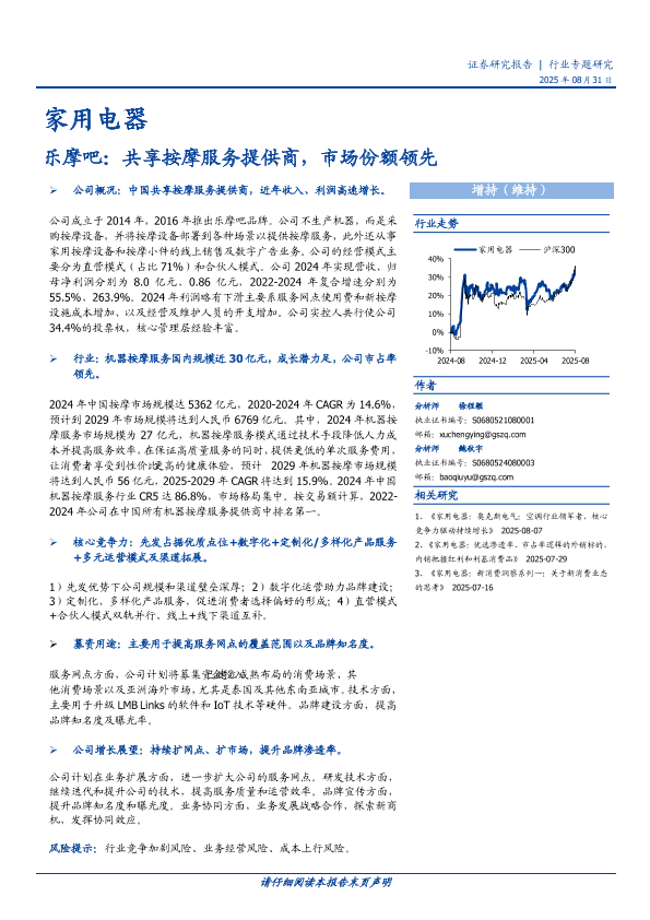 【国盛证券】【202508】家用电器行业乐摩吧:共享按摩服务提供商,市场份额领先-18页