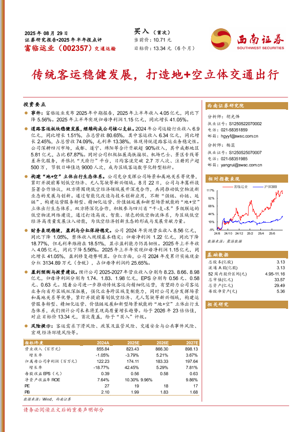 【西南证券】【202508】富临运业2025年半年报点评:传统客运稳健发展,打造地+空立体交通出行-15页