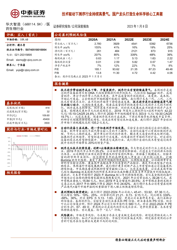 【中泰证券】【20230108】华大智造(688114)技术驱动下测序行业持续高景气,国产龙头打造生命科学核心工具箱-30页