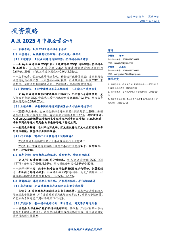 A股 中报分析 业绩增长 行业研究 投资策略