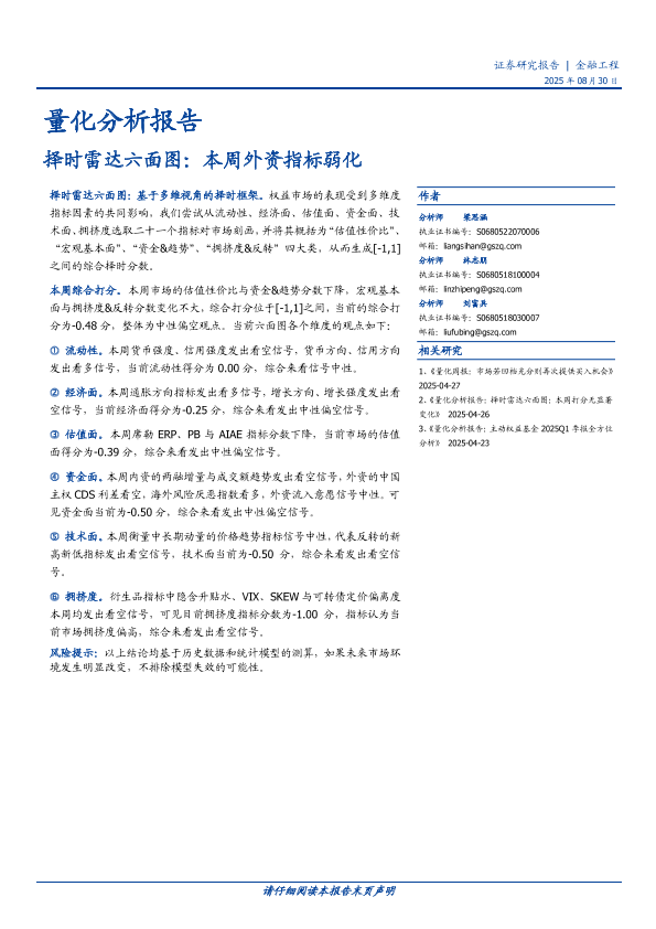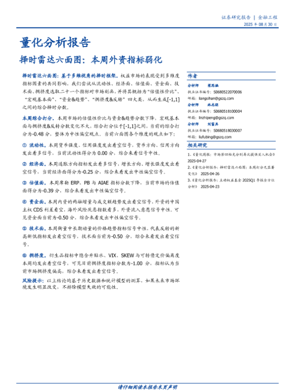 【国盛证券】【202508】择时雷达六面图:本周外资指标弱化-17页
