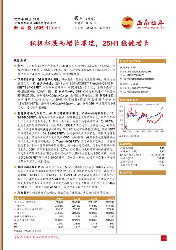 【西南证券】【202509】新洁能(605111)2025年中报点评:积极拓展高增长赛道,25H1稳健增长-10页