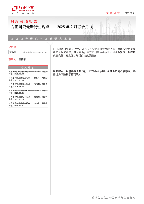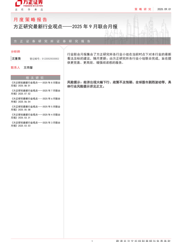 【方正证券】【202509】方正研究最新行业观点——2025年9月联合月报-22页