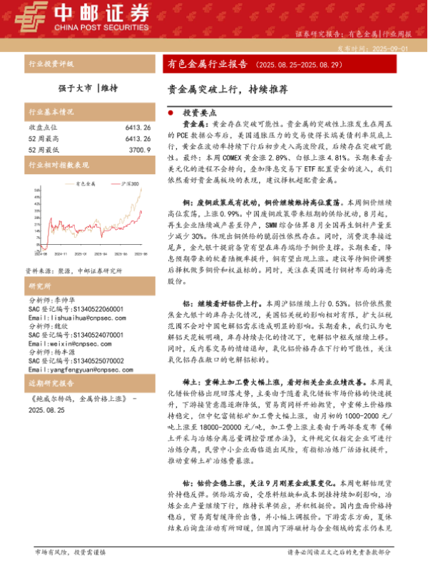 【中邮证券】【202509】有色金属行业报告:贵金属突破上行,持续推荐-12页