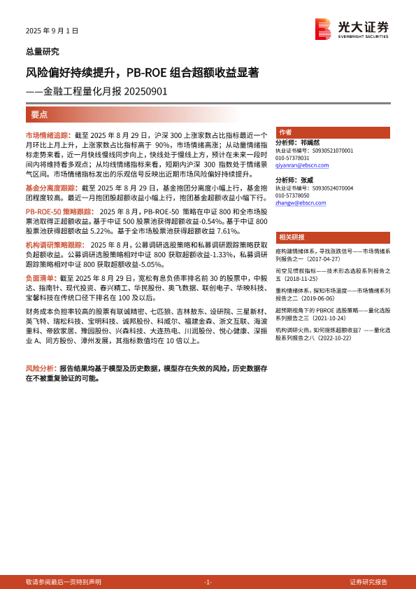 【光大证券】【202509】风险偏好持续提升,PB-ROE组合超额收益显著-12页