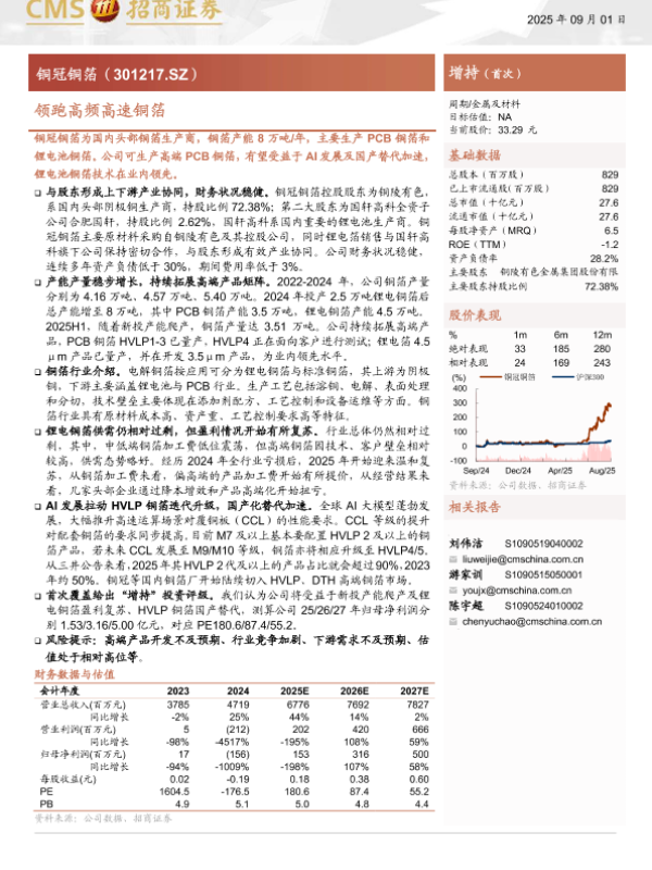 【海通证券】【202509】铜冠铜箔(301217)领跑高频高速铜箔-24页