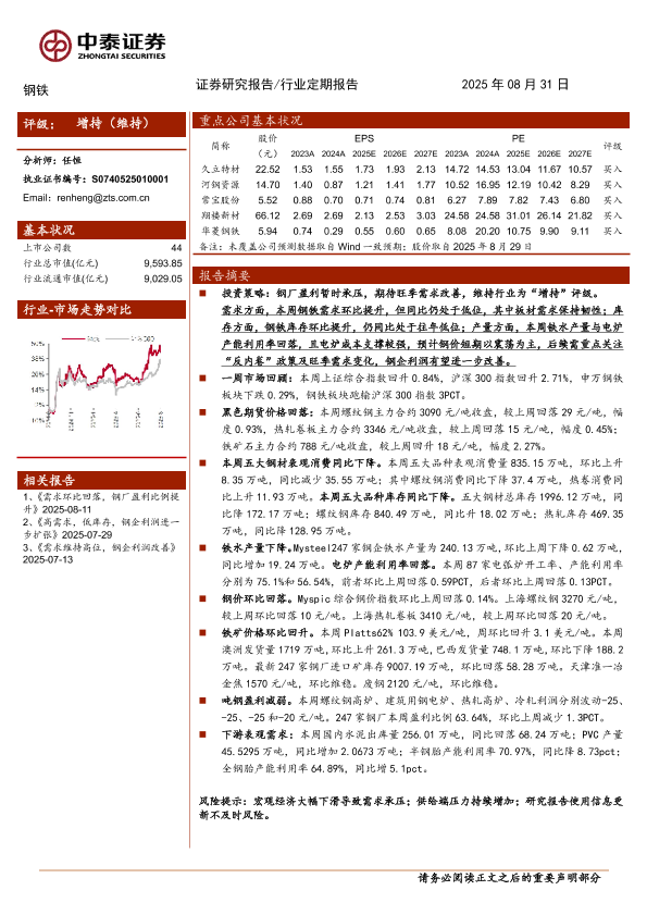 【中泰证券】【202508】钢厂盈利暂时承压,期待旺季需求改善-16页
