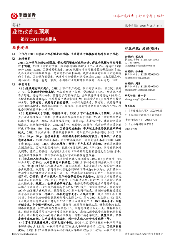 【浙商证券】【202508】银行 25H1综述报告-10页