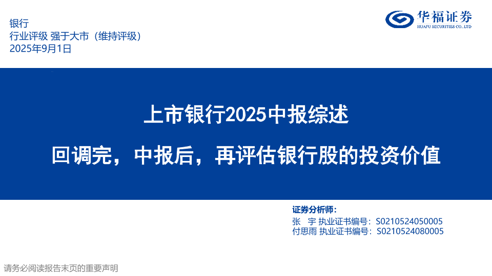 【华福证券】【202509】上市银行2025中报综述:回调完,中报后,再评估银行股的投资价值-63页
