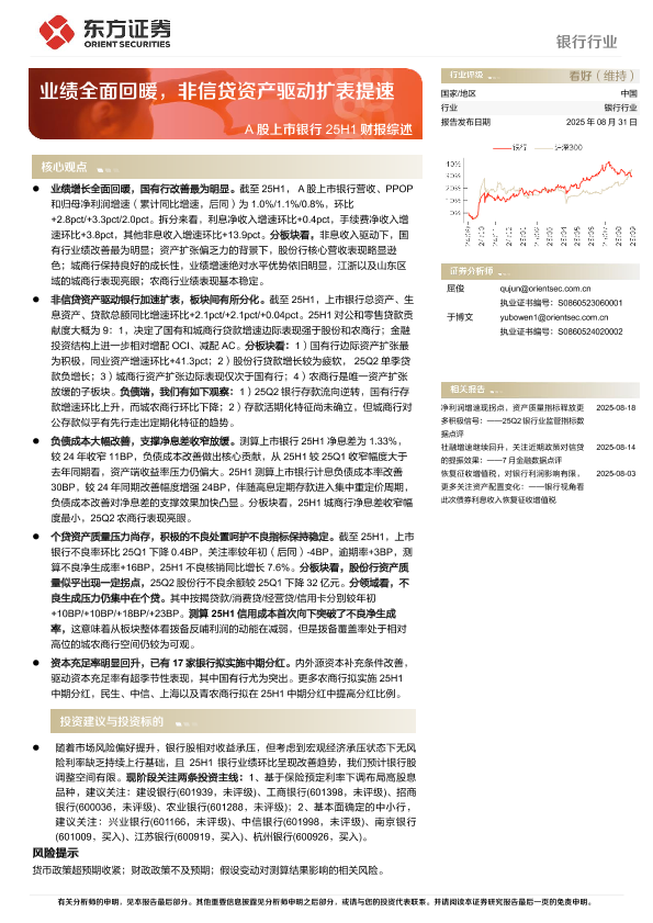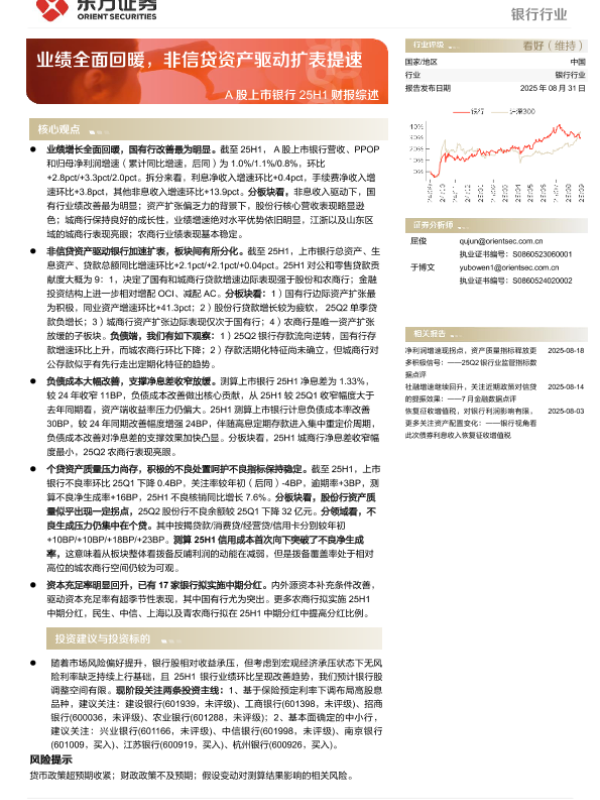 【东方证券】【202508】银行行业深度报告 ——业绩全面回暖,非信贷资产驱动扩表提速-25页
