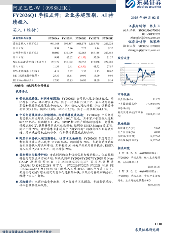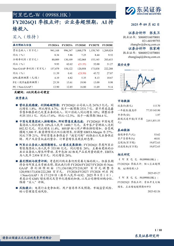 【东吴证券】【202509】阿里巴巴-W(09988.HK)FY2026Q1季报点评:云业务超预期,AI持续投入-10页