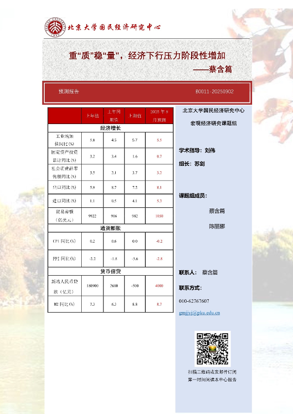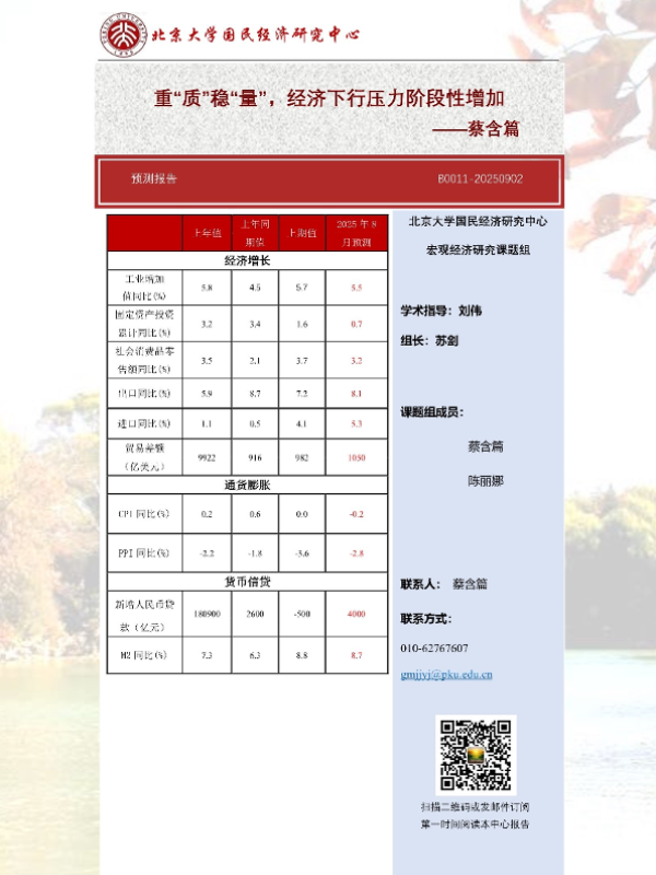 【北京大学国民经济研究中心】【202509】重“质”稳“量”,经济下行压力阶段性增加-14页
