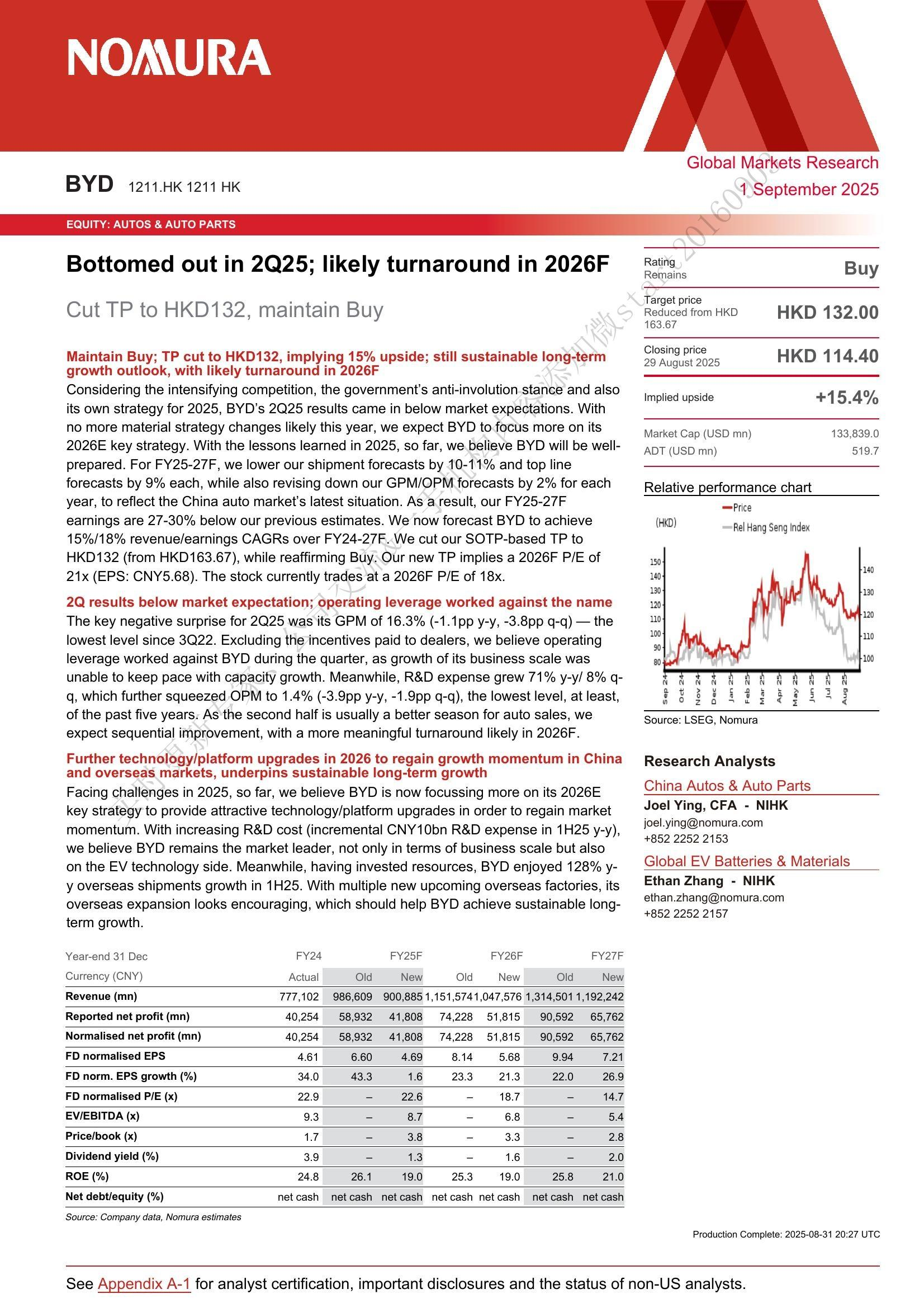 【Nomura】【202508】BYD Bottomed out in 2Q25; likely turnaround in 2026F-14页