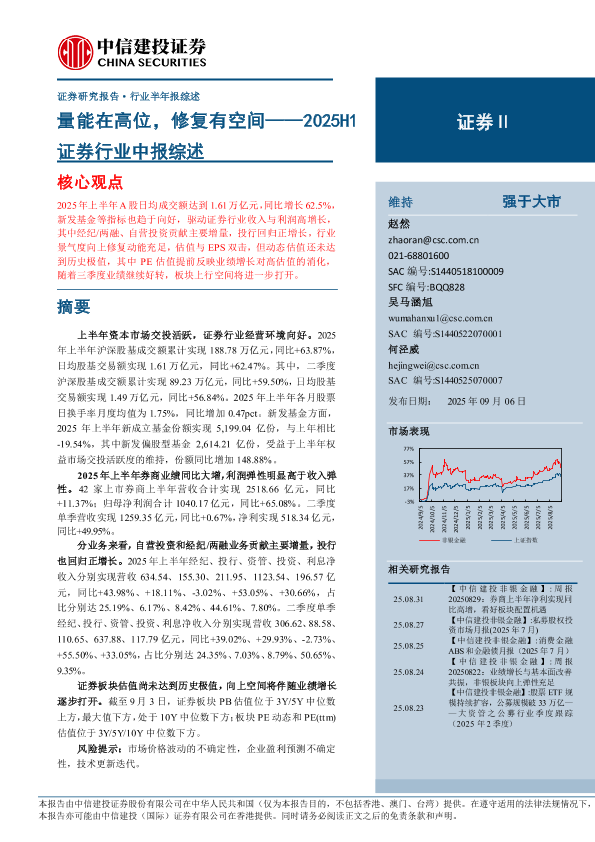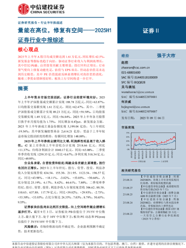 【中信建投证券】【202509】量能在高位,修复有空间——2025H1 证券行业中报综述-27页