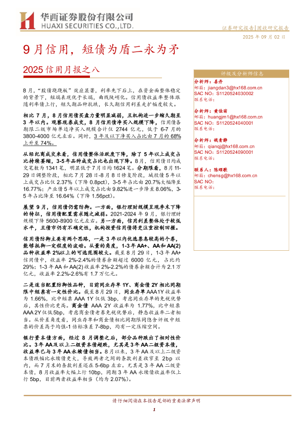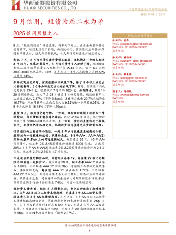 【华西证券】【202509】2025信用月报之八:9月信用,短债为盾二永为矛-23页