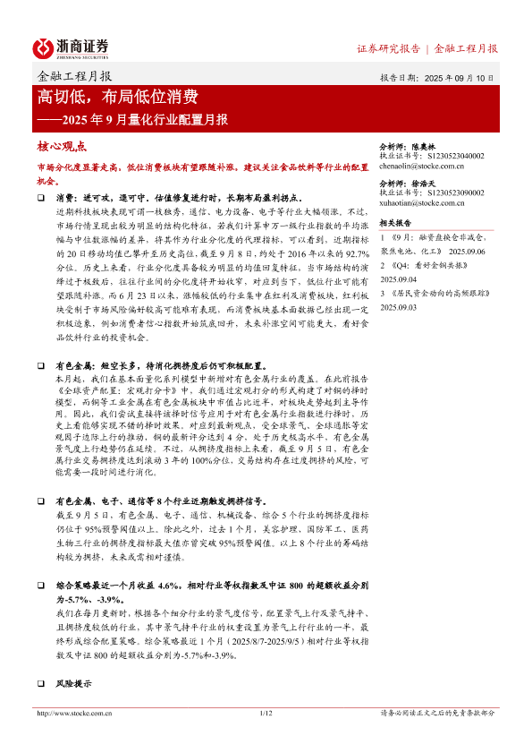 【浙商证券】【202509】高切低,布局低位消费——2025年9月量化行业配置月报-12页