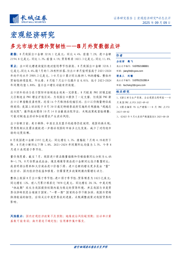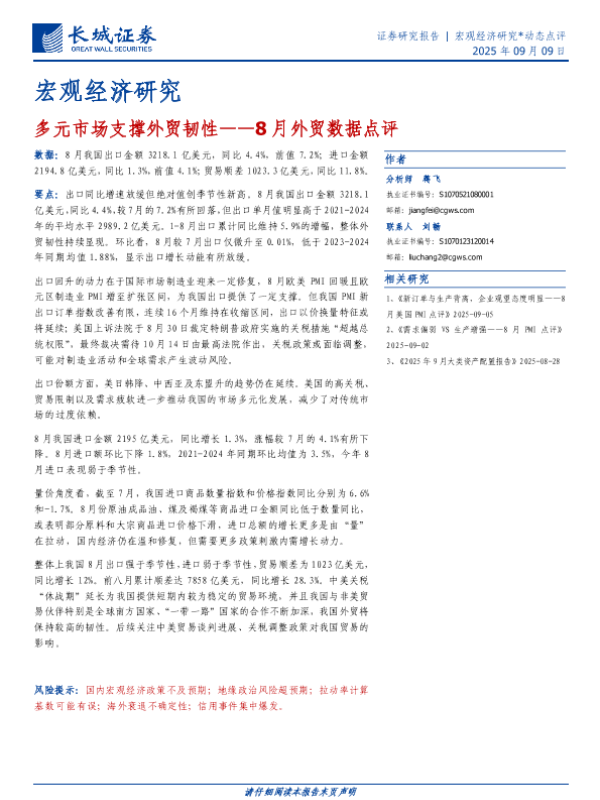 【长城证券】【202509】多元市场支撑外贸韧性——8月外贸数据点评-10页