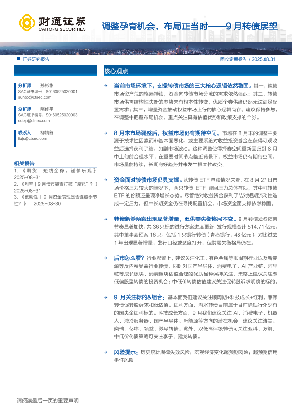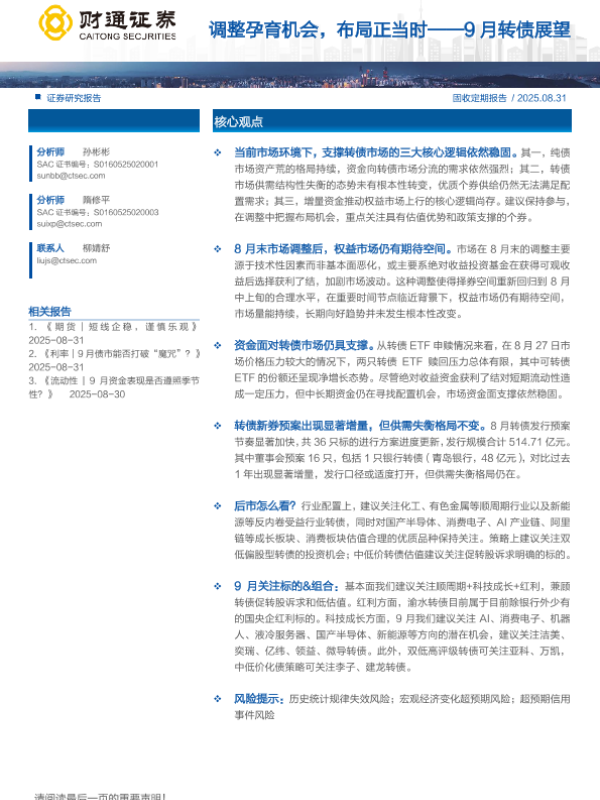 【财通证券】【202508】调整孕育机会,布局正当时——9月转债展望-15页