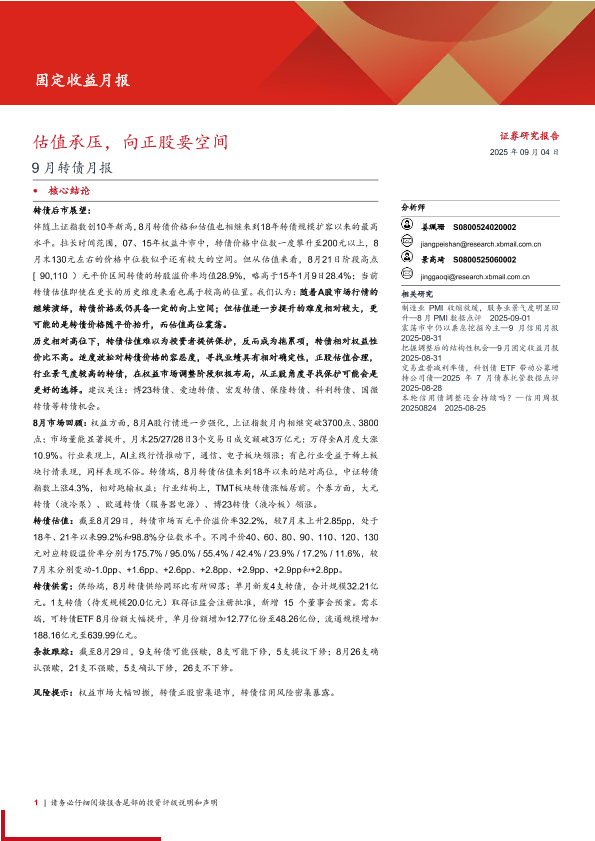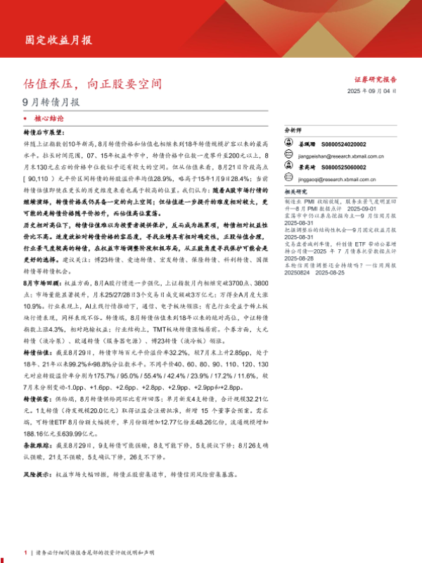 【西部证券】【202509】9月转债月报:估值承压,向正股要空间-17页