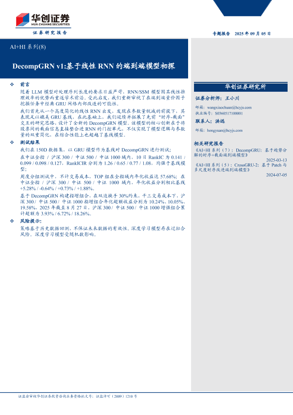 【华创证券】【202509】AI+HI系列(8):DecompGRNv1,基于线性RNN的端到端模型初探-25页