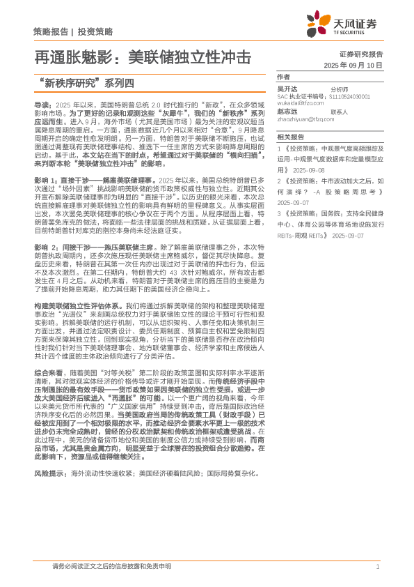 【天风证券】【202509】再通胀魅影:美联储独立性冲击-13页