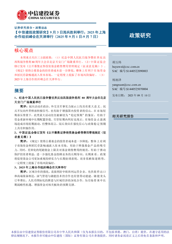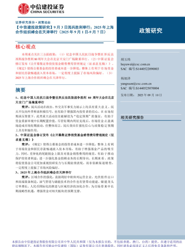 【中信建投证券】【202509】9月3日阅兵胜利举行;2025年上海合作组织峰会在天津举行-14页