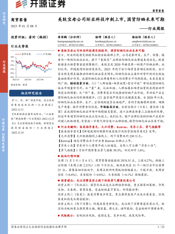 【开源证券】【20230108】商贸零售行业周报:美肤宝母公司环亚科技冲刺上市,国货防晒未来可期-25页