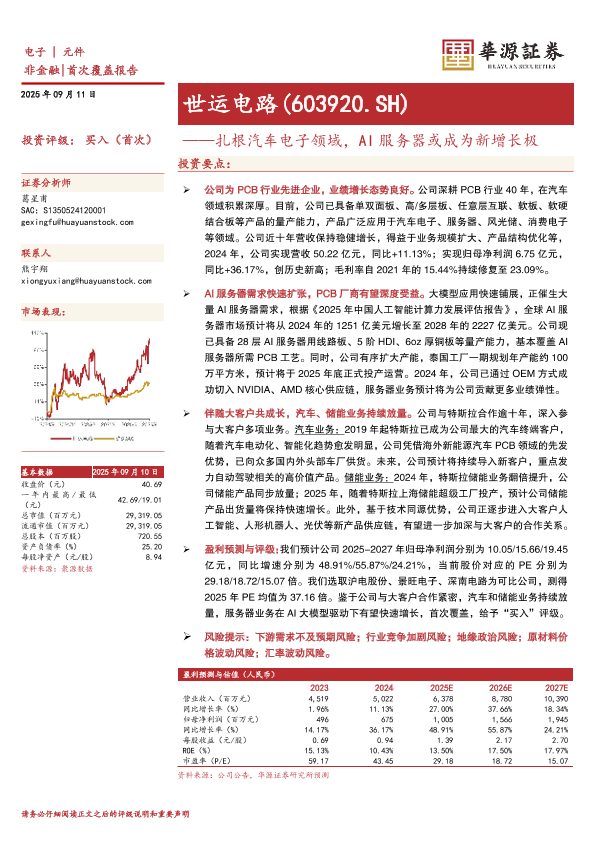 【华源证券】【202509】世运电路:扎根汽车电子领域,AI服务器或成为新增长极-14页