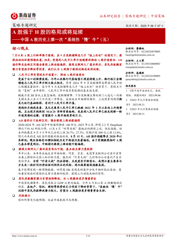 【浙商证券】【202509】A股强于 H股的格局或将延续-14页