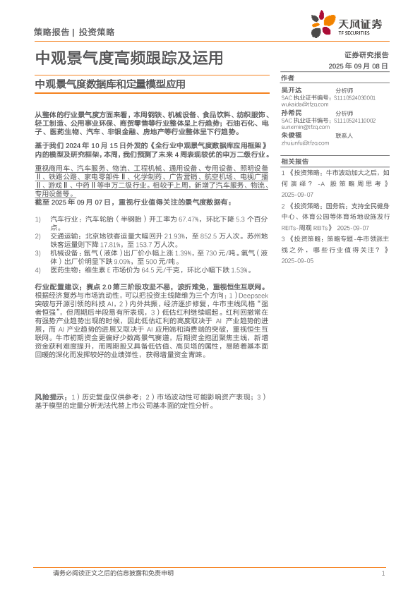 【天风证券】【202509】中观景气度高频跟踪及运用:中观景气度数据库和定量模型应用-18页