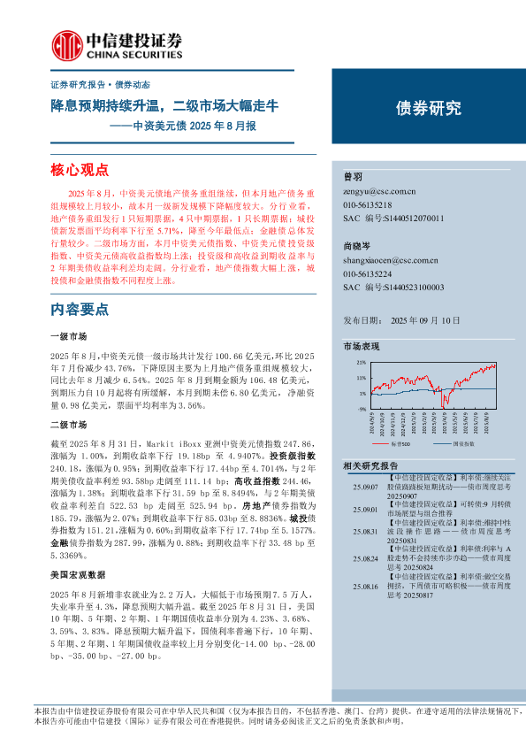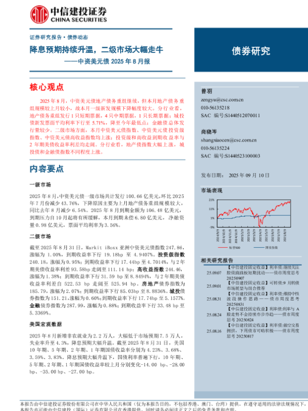 【中信建投证券】【202509】中资美元债 2025年 8月报——降息预期持续升温,二级市场大幅走牛-13页