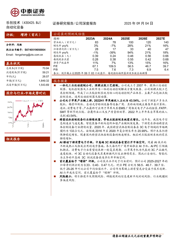 【中泰证券】【202509】乐创技术(430425)深耕点胶工艺控制领域,AI有望打开3C设备成长空间-18页
