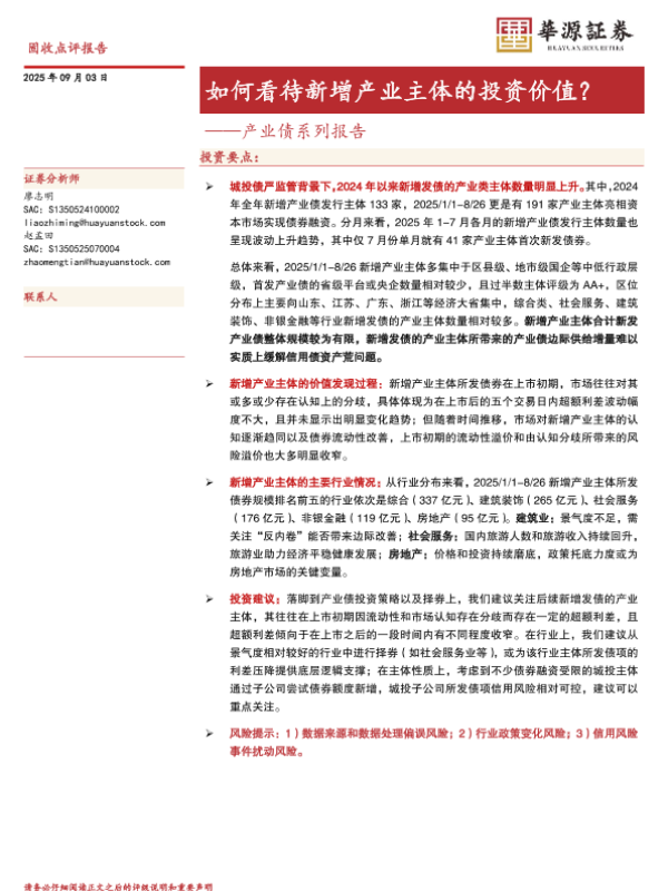 【华源证券】【202509】产业债系列报告:如何看待新增产业主体的投资价值?-10页