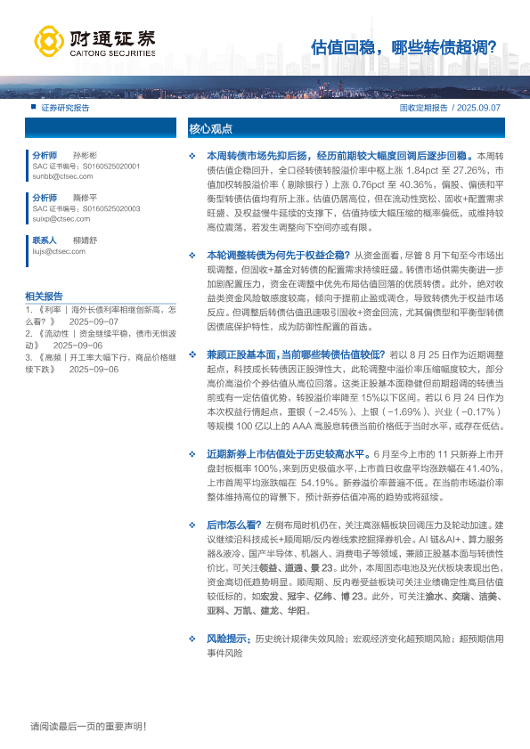 【财通证券】【202509】估值回稳,哪些转债超调?-15页