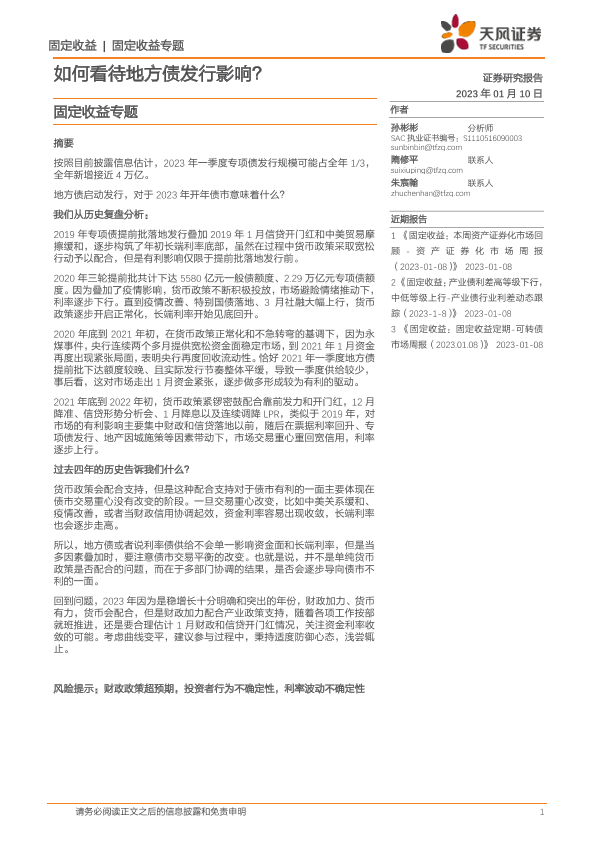 【天风证券】【20230110】固定收益专题:如何看待地方债发行影响?-18页