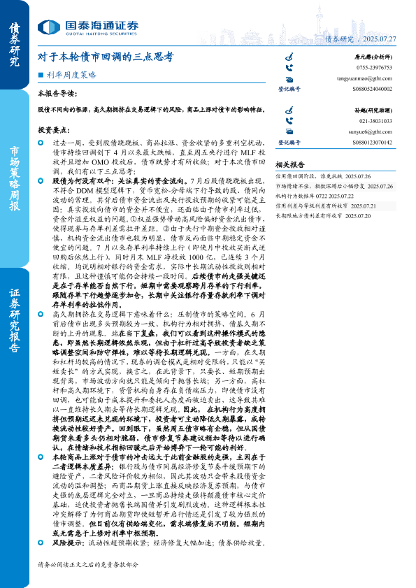 【国泰海通证券】【202507】利率周度策略:对于本轮债市回调的三点思考-10页
