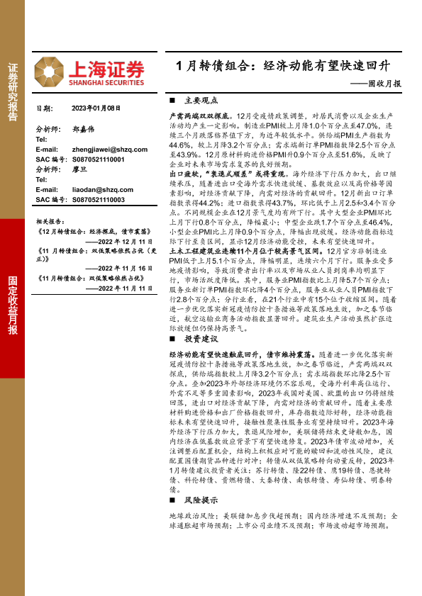 【上海证券】【20230108】固收月报:1月转债组合,经济动能有望快速回升-15页