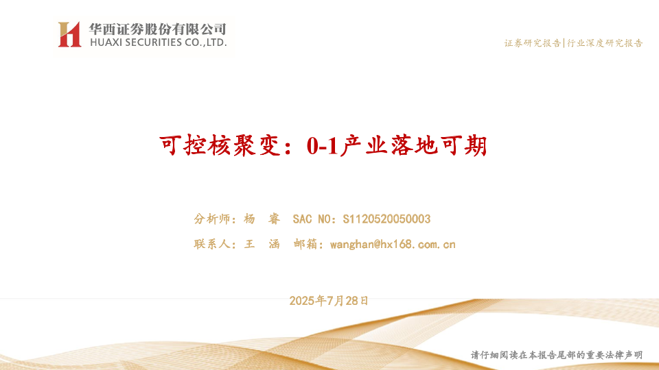 【华西证券】【202507】可控核聚变:0-1产业落地可期-31页